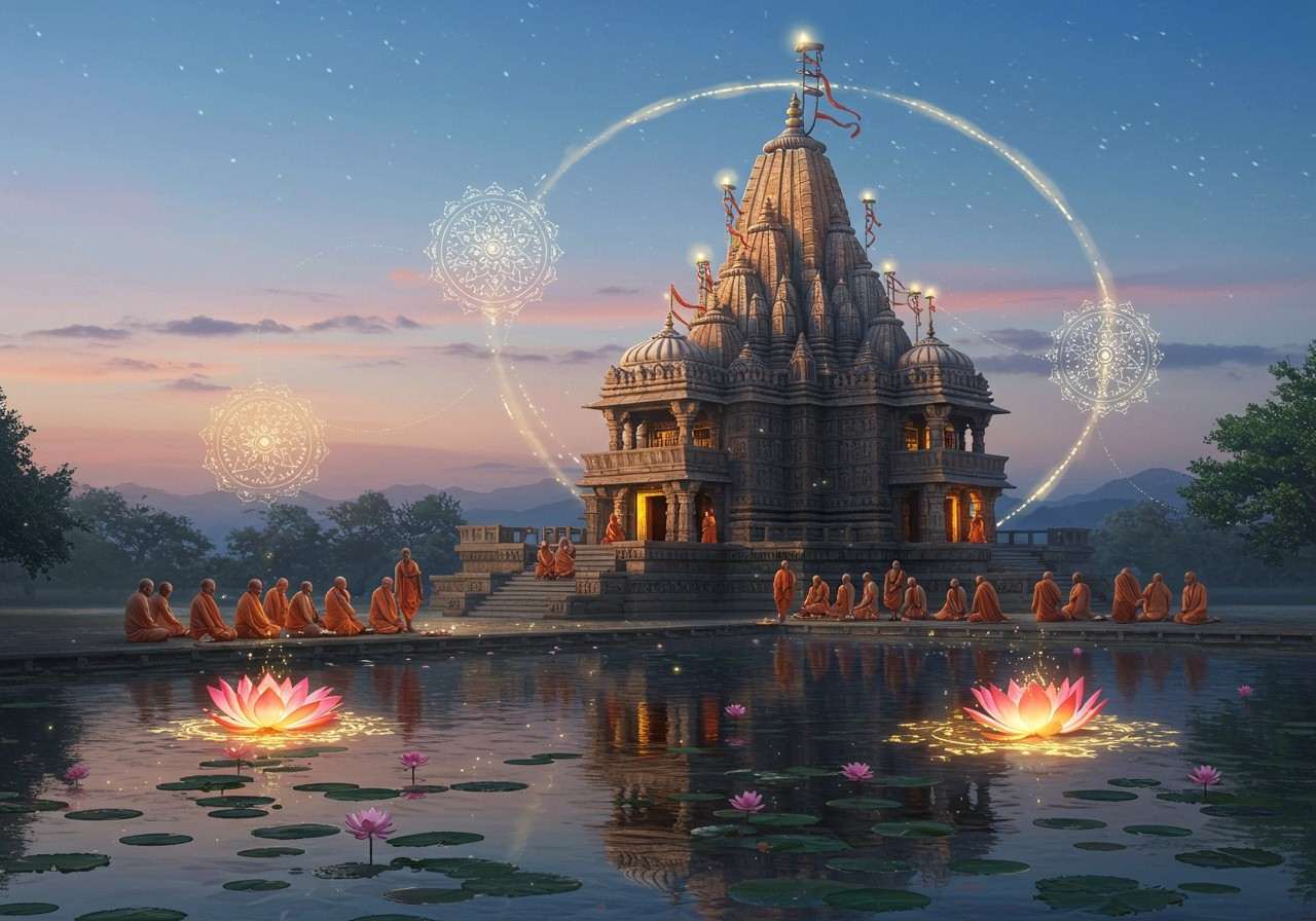 Devotees participating in a ritual, signifying the cultural importance of temples in India