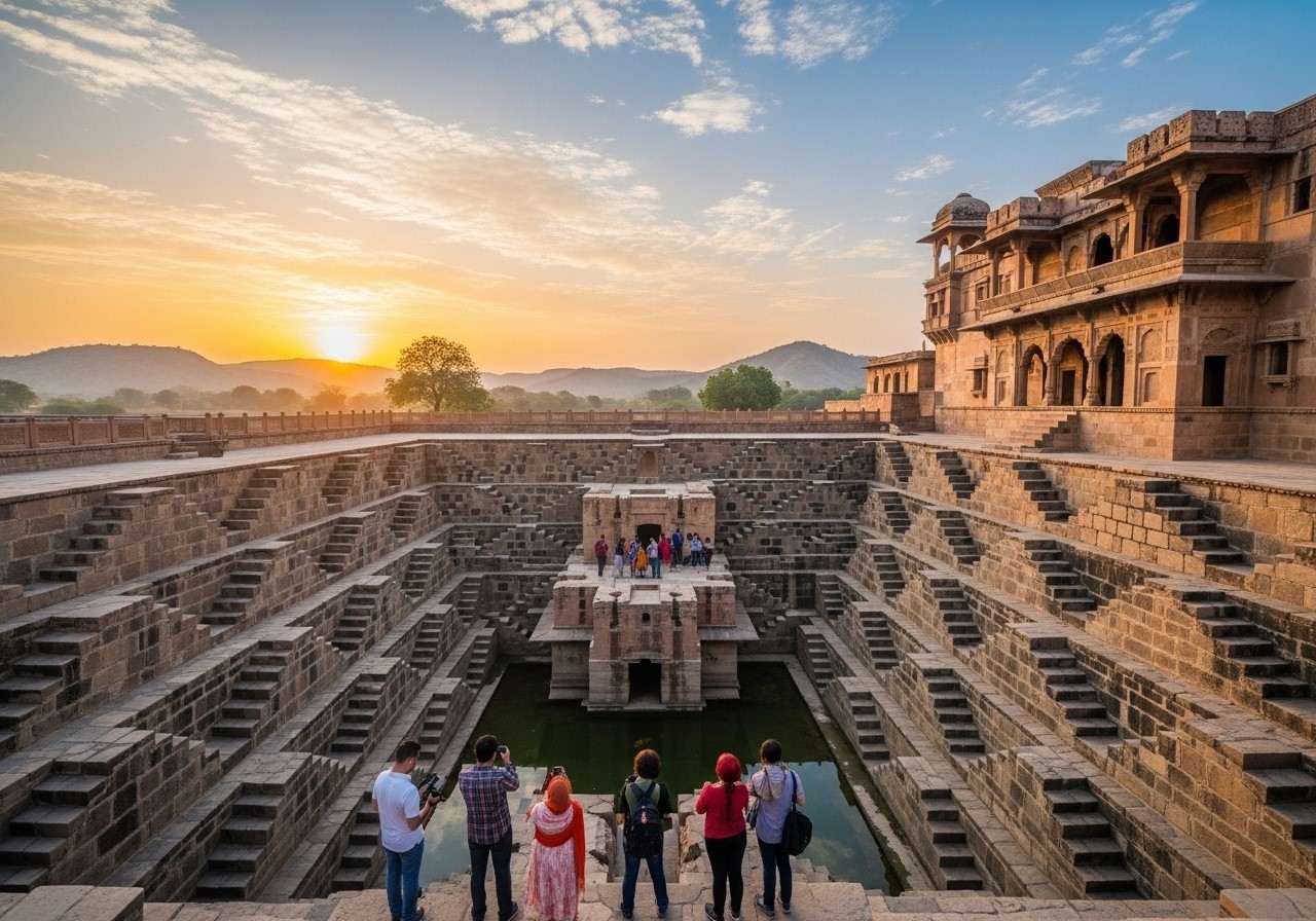 Stepping into this district feels like walking through a living museum of India’s architectural brilliance. Every ancient stone here whispers tales of devotion and royal legacy. Your itinerary must include the breathtaking Chand Baori Stepwell, an awe-inspiring geometric marvel featuring 3,500 symmetrical steps that has stood proudly for over 1,200 years.