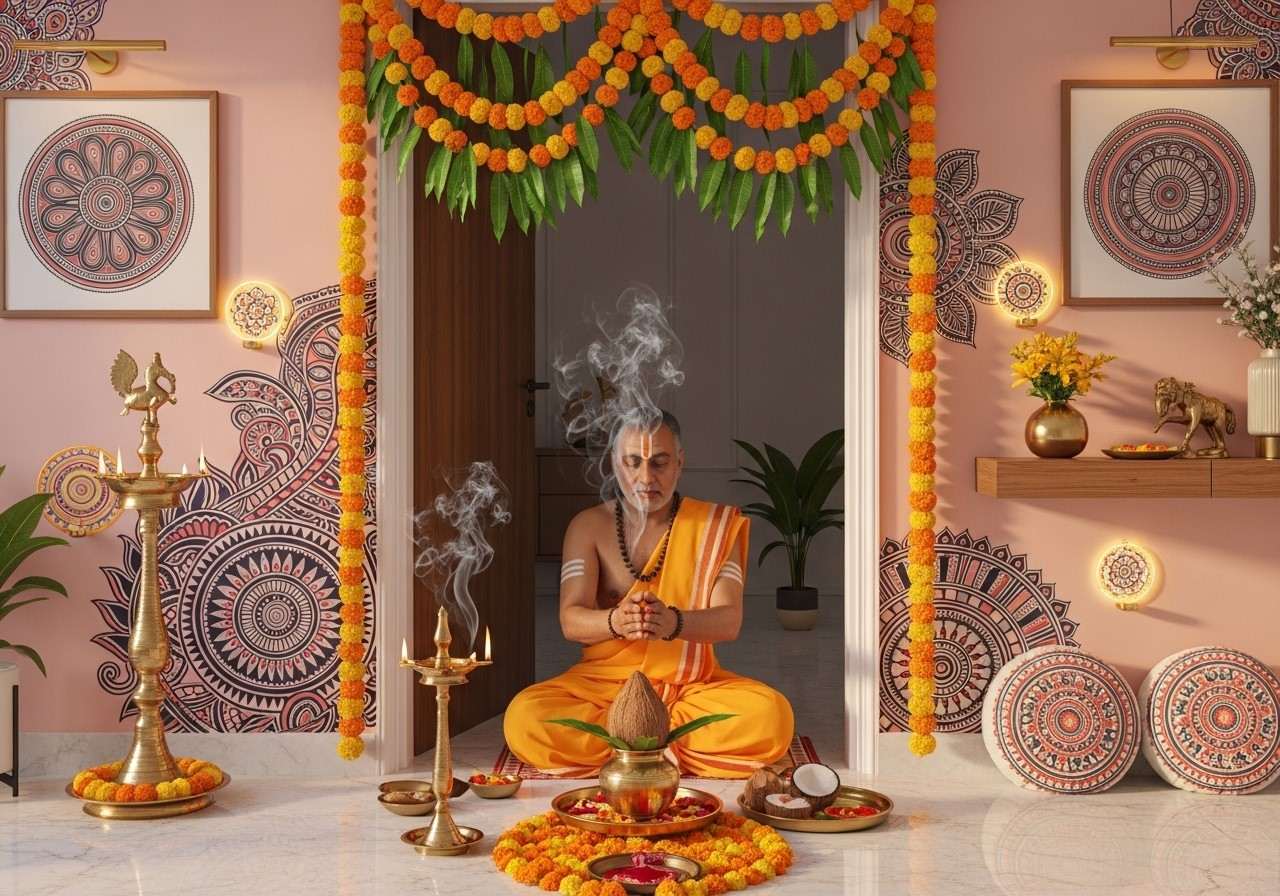 A traditional and complete ceremony generally features the vital Ganesh Puja to remove all obstacles, followed by the continuous chanting of powerful Vedic mantras, the lighting of sacred ghee lamps, and the symbolic breaking of a fresh coconut at the main entrance. Together, these beautiful practices work in unison to deeply purify the household and warmly invite a flow of positive, vibrant energy.