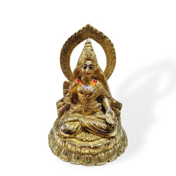 This 10″ Pure Brass Statue of Mangalchandi (Santoshi Mata) is a testament to skilled craftsmanship. Every detail, from the serene expression on her face to the intricate folds of her attire, is meticulously rendered, capturing the essence of her divine grace. The well-polished finish enhances the statue’s radiant beauty, making it a captivating centerpiece for your prayer altar or a cherished addition to your home décor.