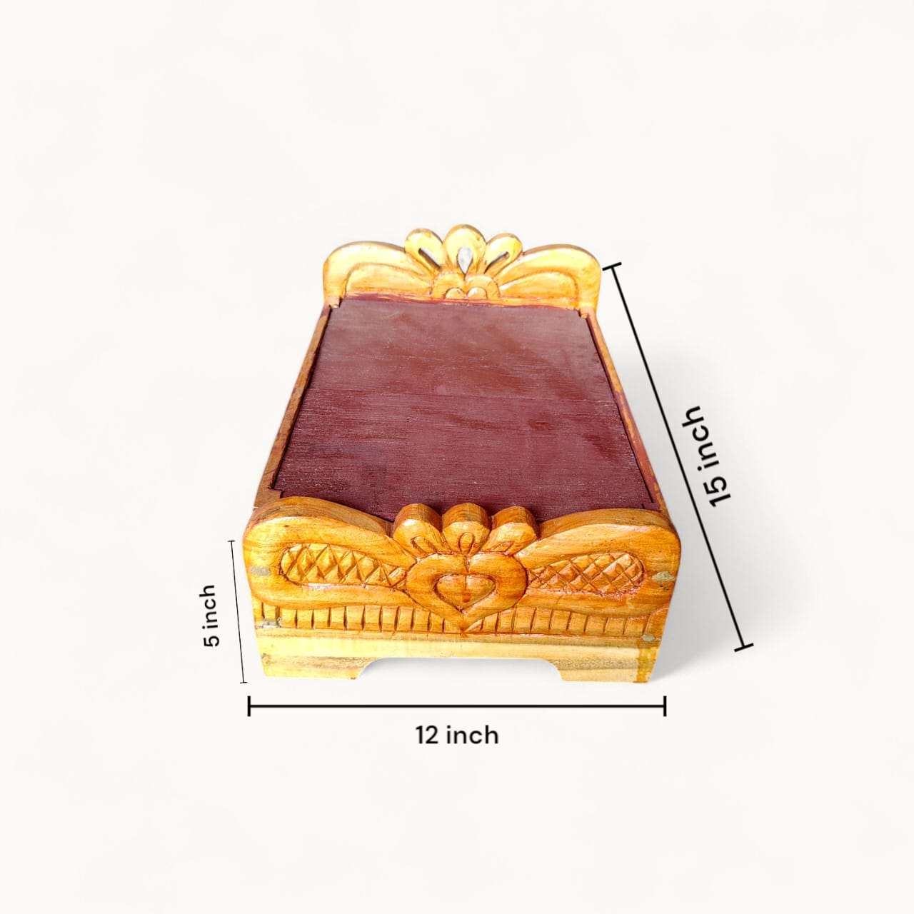 Masterful Craftsmanship: Each bed is carved from premium wood, ensuring durability and a timeless appeal that will grace your mandir for years to come.